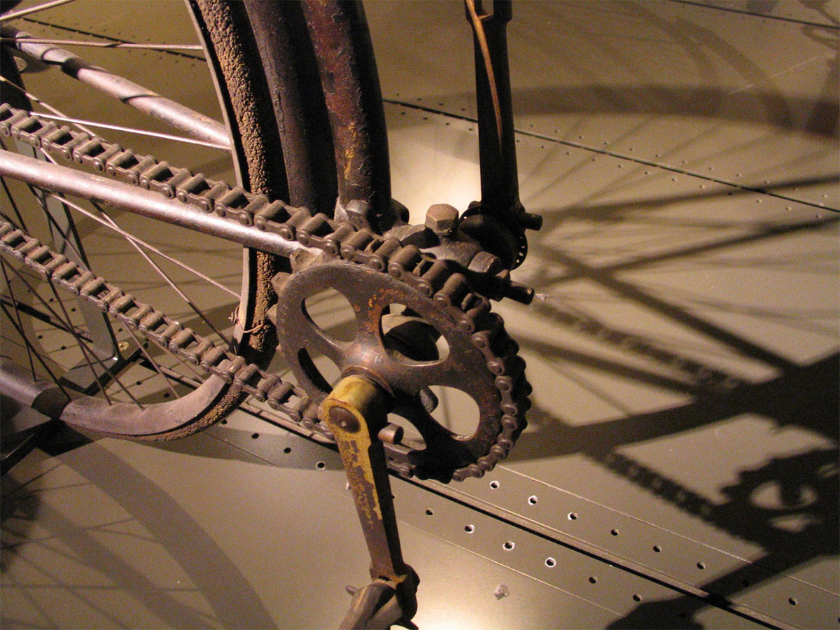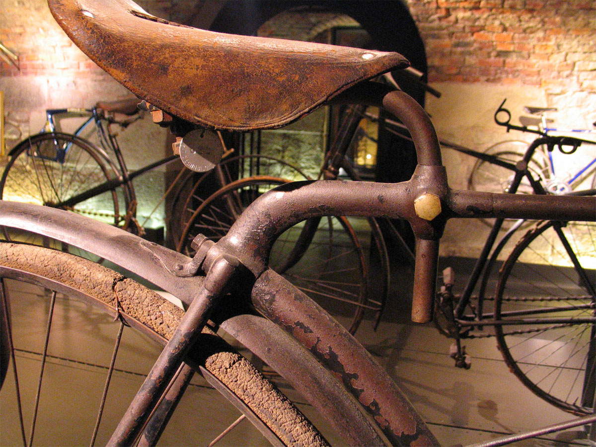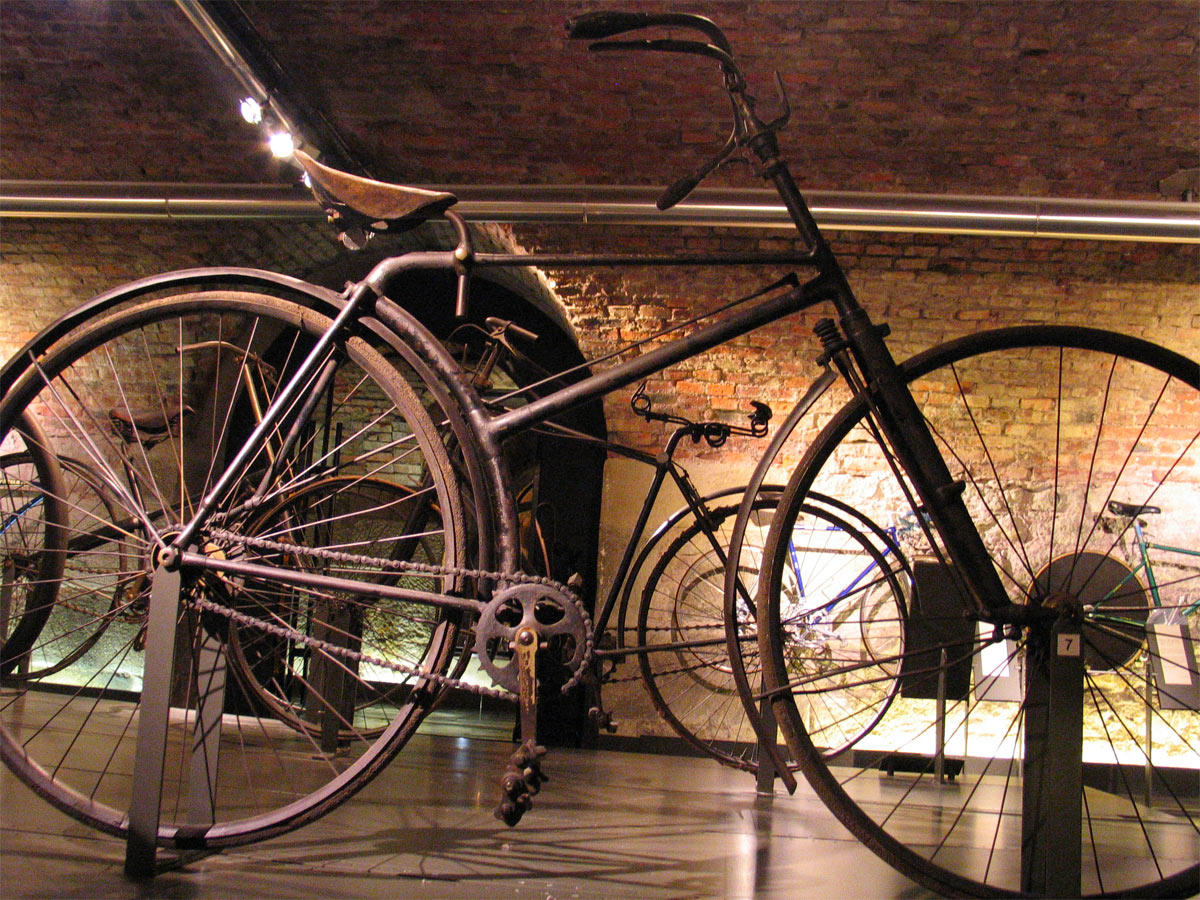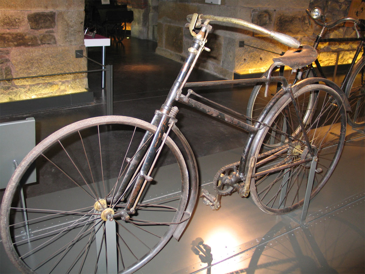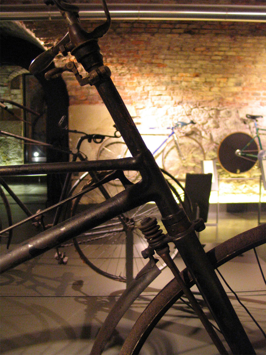And the longer you look at this Royal Singer, the more beautiful it gets. Look at the front suspension system, and, as a consequence, the rear wheel band brake. The adjustable bracket, the chainwheel, the lugs. This bike is special in every detail and the Musee d' Art et d' Industrie in St. Etienne is lucky to have one in their collection. Original paint and even a nice transfer on the (ball bearing) head.